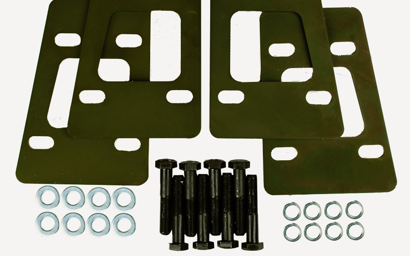 Designed to reduce tail shaft angle and remove driveline vibration that arises from an out-of-phase drivetrain. The universal joints in a vehicle’s tailshaft must operate at the same angle to operate harmoniously. If the angle of one universal joint is different to the other, or the universal joints are forced to operate on an angle larger that within tolerance, the resulting vibration can be felt through the vehicle when driven. To restore the universal joints to harmony, Tough Dog spacer kits are available for vehicles that commonly suffer from vibration.